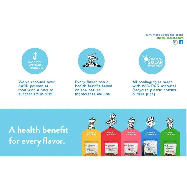 - Health Benefit for Every Flavor: Each Shameless Pets treat is crafted with a specific health benefit in mind, so your pets can get the nutrition they need, even from treat time. These soft baked biscuits are packed with omega 3 & 6 for skin & coat support.