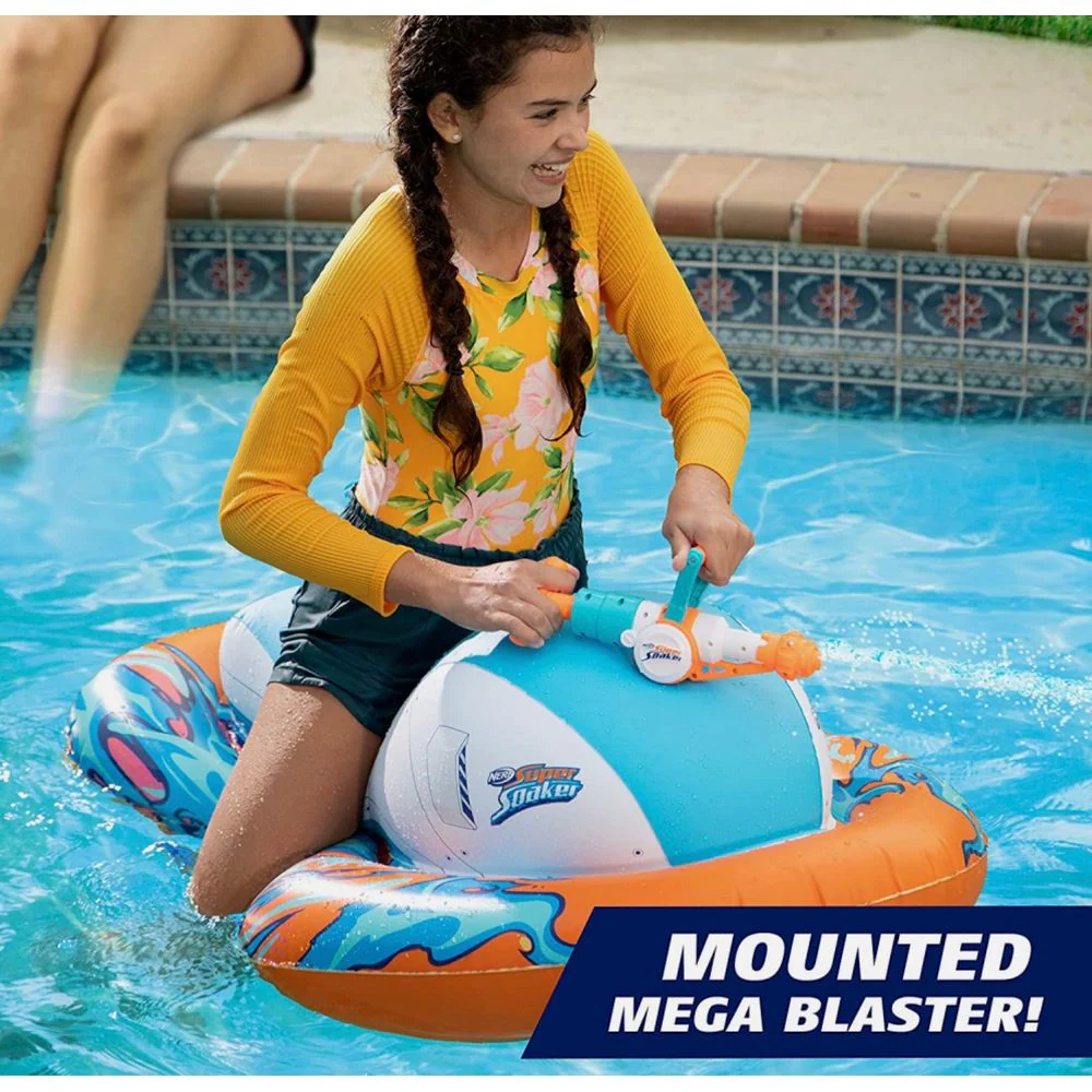 - WATER-BLASTING MAYHEM! Introducing next level pool battle fun that will leave your opponents SOAKED! Get ready to drench your friends from 25ft away with the Nerf Super Soaker Stormforce Ride-On Racer!