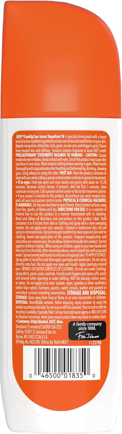 OFF! FamilyCare Insect & Mosquito Repellent Spritz, Unscented Bug spray with Aloe-Vera, 7% Deet, 6 oz (12/Carton)
